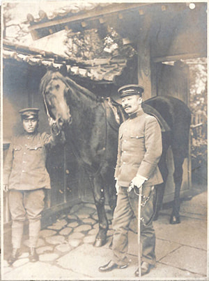 The paving stones at Ogai's feet still remain at the entrance of the memorial museum. (Taken in 1912, Owned by Bunkyo City Mori Ogai Memorial Museum)