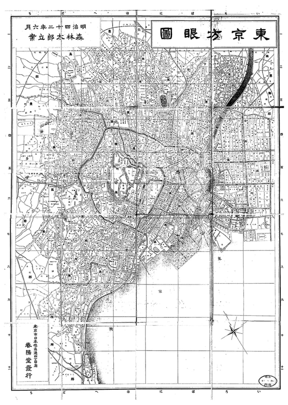 "Tokyo Hogan-zu," a map charted on graph paper, devised by Rintaro Mori(Ogai Mori) (Issued by Shunyo-do in 1909)