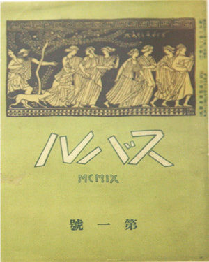 森鴎外が主宰した文芸雑誌。巻之1の表紙は、ドイツ留学時に交遊を持った画家原田直次郎(はらだ なおじろう)が手掛けています。幸田露伴、尾崎紅葉、齊藤緑雨等の著名な文学者が数多く寄稿し、鴎外、緑雨、露伴による『三人冗語(さんにんじょうご)』 (後に『雲中語』に改題) は、文学評論として注目を集めました。表紙絵は原田直次郎の他、中村不折(なかむら ふせつ)や黒田清輝(くろだ せいき)も担当しています。