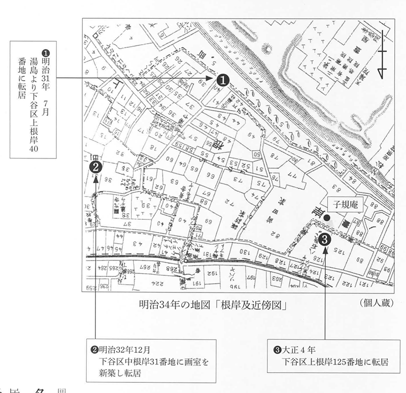 It has been located in the same place, but the grounds at that time were about half the size of the present ones. It was called "Negishian" when Shiki was alive because it is located in Negishi. Although the present address is 2-chome, Negishi, Taito City, it was Kaminegishi-cho, Shitaya-ku at that time.