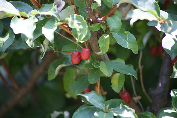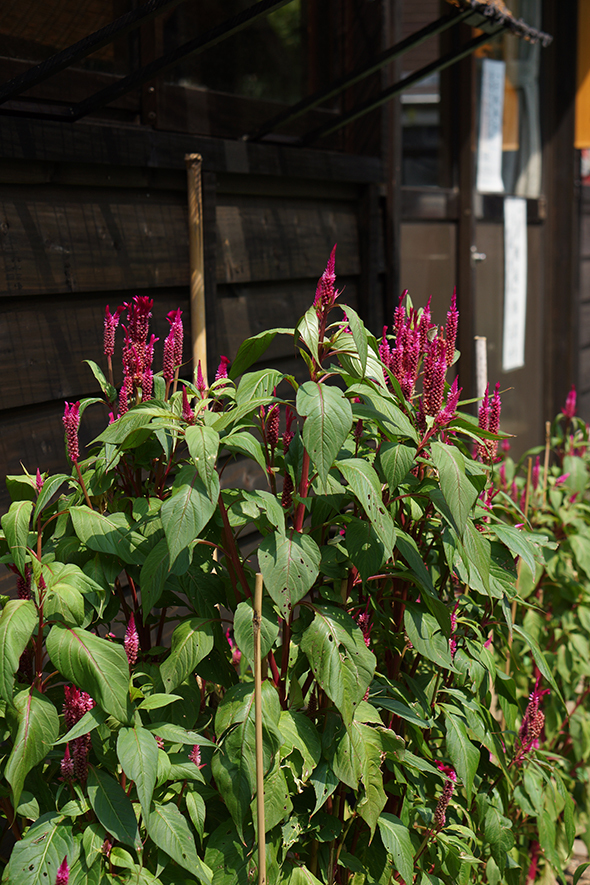 子規庵の庭には、妹の律や友人が病床の子規を慰めるために様々な草木を植えました。「小園の記」には小園の図があり、俳句で草木がその場所場所に示されています。椎、竹、松、萩、芒、鶏頭、桔梗、朝顔、秋海棠、おしろい花、葉鶏頭、百日草です。松葉牡丹は別名の日照草(ひでりそう)と両方登場しています。子規の好きな薔薇や、子規庵の象徴のような糸瓜はこの頃まだ無く、糸瓜棚は34年に作られました。