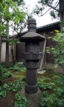 "Kiyomizu Rokudo Rokujizo Sekito," a stone monument, which was made in 1660, is placed in front of the entrance of the memorial hall. The vicinity of Chinnoji Temple in Higashiyama, Kyoto, is called "Rokudo no Tsuji," or crossroads of the six worlds of spiritual darkness, and people have said that it is the road to the other world. It is considered that the stone monument was placed at "Rokudo no Tsuji."