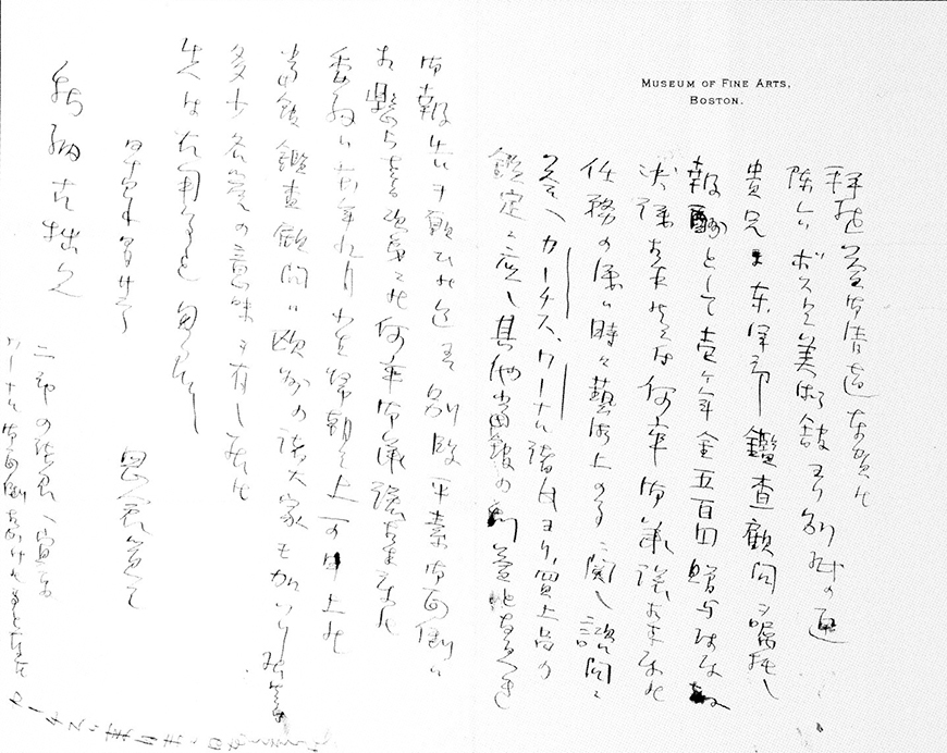 天心寄给九鬼隆一的书信(1913年(大正2)、茨城县天心纪念五浦美术馆收藏)