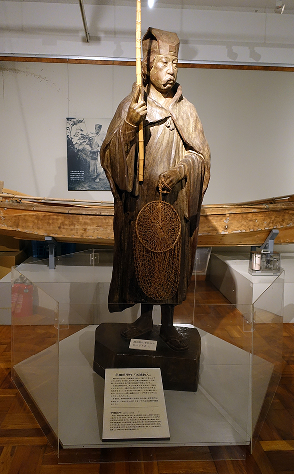 일본 미술원이 경영난에 빠진 후 메이지 39년(1906), 텐신은 미술원을 ‘동양의 바르비종’으로 간주한 이바라키현 이즈라(현 기타이바라키시 이즈라)로 옮겼습니다. 텐신을 따르던 요코야마 다이칸, 히시다 슌소, 시모무라 칸잔, 기무라 부잔 등은 그곳에서 어려운 시기를 보냈지만 이후에 일본 미술의 새로운 작풍을 개척하였습니다. 이즈라에 거처를 옮긴 텐신은 국내외를 바삐 오가는 한편, 이즈라의 자택에서 휴식을 취하며 낚시에 몰두하여 스스로를 ‘이즈라 노인’, ‘고호쵸진(이즈라 낚시꾼)’이라고 칭했습니다. 텐신을 존경하던 히라구시 덴츄는 반복해서 「고호쵸진」을 제작했습니다. (이바라키대학 이즈라 미술문화 연구소 소장)