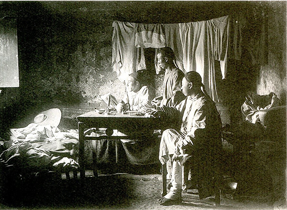 하야사키 코키치는 메이지 24년(1891)에 상경, 하시모토 가호 밑으로 입문함과 동시에 텐신의 서생이 되었습니다. 메이지 25년(1892)에 도쿄 미술학교에 입학하고 중국미술의 취재에 조수로 동행한 것을 계기로 중국예술 연구를 지향했습니다. 하야사키가 촬영한 중국 취재 당시의 사진을 통해 텐신이 현지 복장에 변발을 틀고 여행했다는 것을 알 수 있습니다.