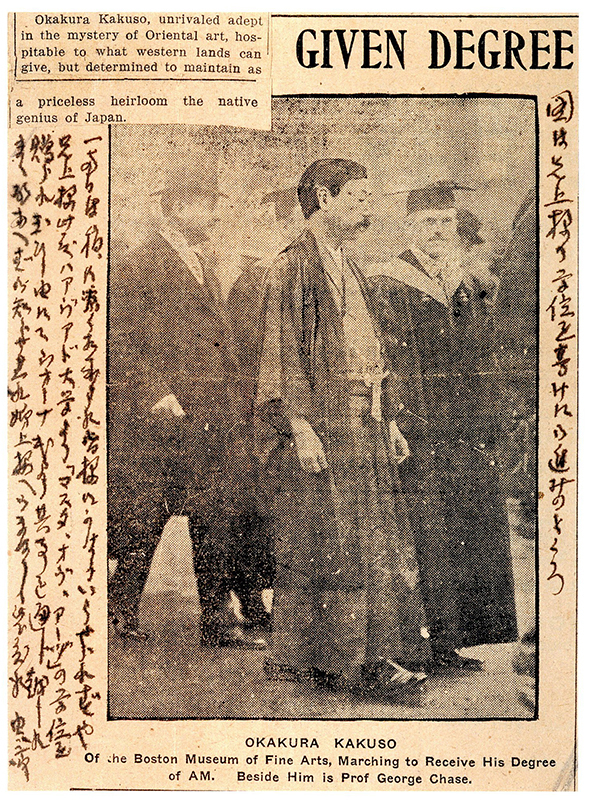하버드 대학에서 받은 문학석사 ‘Masters of Arts’ 학위 수여식 참석에 대한 신문기사. 기사의 좌우 글은 동생인 요시사부로가 쓴 것입니다.