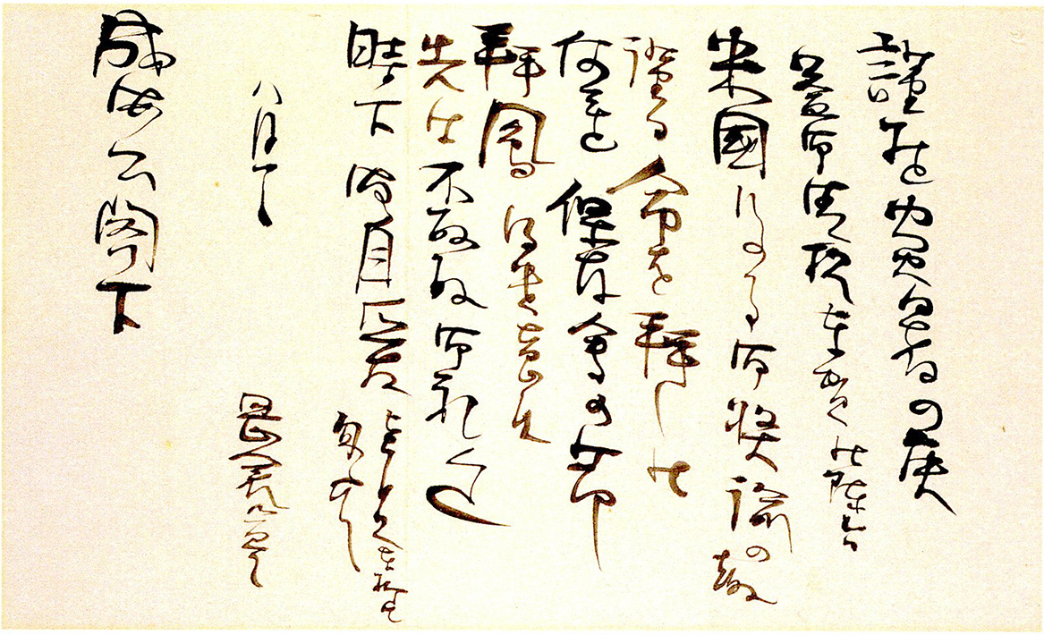 구키 류이치에게 보내는 텐신의 서한(다이쇼 2년(1913), 이바라키현 텐신 기념 이즈라 미술관 소장)