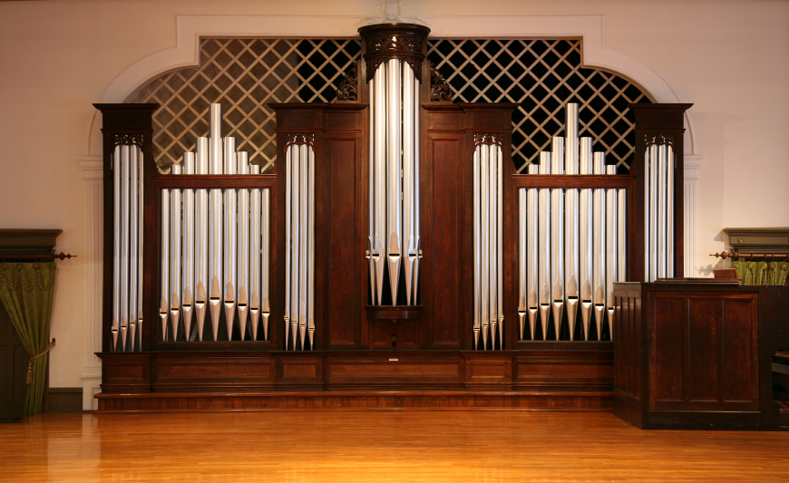 Yorisada Tokugawa, a music researcher, bought the Sogakudo's pipe organ from England in 1920, installed it in the concert hall "Nankigakudo," which was designed by William Merrell Vories, in Shirokane Sanko-cho, Shiba-ku (the present Shirokane, Minato City). The pipe organ was used for concerts and other events. Later, it was donated to the Tokyo Music School in 1928. It has 1379 pipes, and employs a pneumatic action mechanism. It is the oldest pipe organ for concerts in Japan. Along with the restoration work, the pipe organ was also restored, producing unchanging tones.