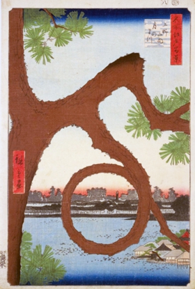 歌川廣重是江戶時代末期的浮世繪師,爲後世留下了《東海道五十三次》和《六十余州名所圖會》以及《名所江戶百景》等數量豐富的風景畫。其中《名所江戶百景》是廣重最晚期的作品,因爲巧妙地運用了俯瞰和鳥瞰等視點和構圖方法被後世廣爲稱道,成爲其深具代表性的作品之一。尤其是他對藍色的巧妙運用,畫面意境清雅獨特,被稱爲廣重藍受到世人的高度評價。
