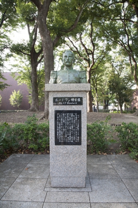 Many branch temples of Kan-eiji Temple were burnt down during the Boshin Civil War (Battle of Ueno) in 1868. The burnt-out site was developed into the first park in Japan at the suggestion of Dutch Doctor Anthonius Franciscus Bauduin who was invited by the Meiji Government in 1870. Bauduin was publicly honored as an originator of Ueno Imperial Gift Park, and his bust was built in the park in 1973. However, the first bust was made based on a picture of Bauduin's brother. The mistake had not been perceived for a long time. The new bust, based on a picture of Bauduin, was built in 2006.