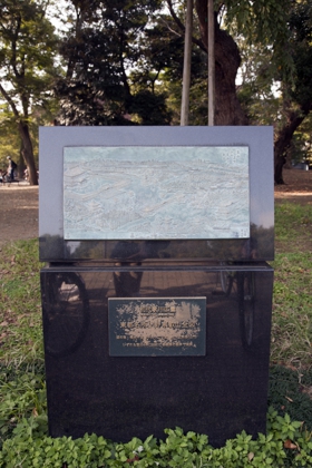 간에이지의 많은 가람은 메이지 원년(1868)의 보신 전쟁(우에노 전쟁) 때 많이 소실되었습니다. 그 터는 메이지 3년에 메이지 정부의 명으로 시찰한 네덜란드 군의인 보드윈의 제안으로 일본 최초의 공원으로 부활했습니다. 보드윈 박사는 우에노 공원의 창설자로서 쇼와 48년(1973)에 우에노 공원 안에 동상이 건립되었습니다. 하지만 첫 동상은 보드윈 박사의 형제 사진을 바탕으로 제작되었음에도 오랫동안 알려지지 않았습니다. 헤세이 18년(2006)에 보드윈의 사진을 바탕으로 새로이 동상이 제작되었습니다.