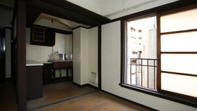 一号馆的1层是商店店铺的店面,2层至4层是家族用住户。二号馆从1层至3层是家族用住户,4层是单身住户和共用的洗水池和卫生间。在关东大震灾后建造的同润会住宅,为了防震采用了坚固的混凝土结构,从室内也能看到尺度很大的混凝土过梁,虽然布局简洁朴素,但是在门、门把手、电灯开关以及楣窗、还有一层作为集会场所房间的接待窗口的格子装饰等细部上都能让人感觉到大正、昭和初期的现代主义印象。